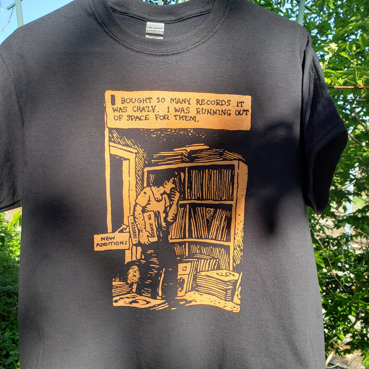 Printed on 100% cotton shirts by Teeth Like Swords Printing.